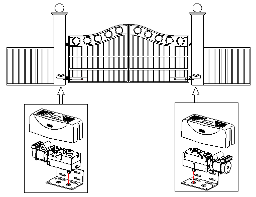 The two engines are respectively installed at both sides of the gate and the Figure 6 shows the installation relation between